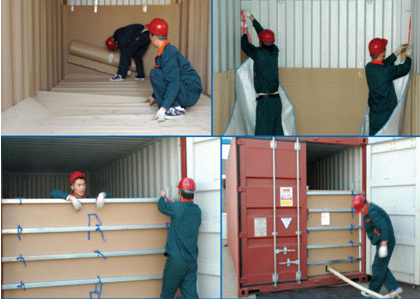 海運集裝箱鋪液袋操作流程:1、集裝箱檢查,鋪裝液袋前必須先打掃海運集裝箱,檢查地板和箱壁無尖銳物、沒有嚴重的變形或較大的修理、箱頂有無破損或滲漏。2、安裝固定柱,海運集裝箱箱壁兩側各安裝方管,用扎帶扎緊。3、鋪設保護層:用干燥整潔的瓦楞紙鋪滿集裝箱底板和海運集裝箱的四周的箱壁 1/2 面積以上。4、放置集裝液袋:集裝袋在放置到集裝箱以前外包裝必須完好,檢查液袋閥門完好邊緣是否破損,不要將裸露的集裝袋直接放置在未經(jīng)鋪墊的集裝箱內(nèi)。最后展開液袋:一般液袋包裝時已經(jīng)將左右兩側折疊好,只要展開即可。
