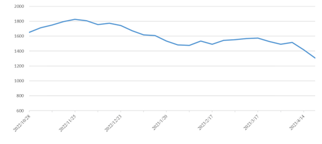 市場需求偏弱,本期(2023年4月15日至4月21日)中國內(nèi)貿(mào)集裝箱運(yùn)價指數(shù)持續(xù)下跌。