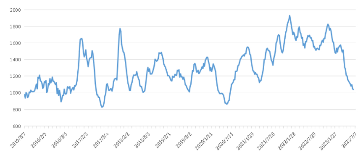 另外,山東指數(shù)報(bào)收1068點(diǎn),環(huán)比下跌9點(diǎn),跌幅0.84%;華東指數(shù)報(bào)收1448點(diǎn),環(huán)比下跌1點(diǎn),跌幅0.07%;福建指數(shù)報(bào)收1415點(diǎn),環(huán)比上漲15點(diǎn),漲幅1.07%。